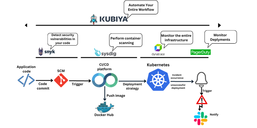 Repetitive and mundane tasks in DevOps can be daunting and can drain the energy out of your developers. So it is time to say goodbye to those complex configuration tools that add a burden to your engineering team. Kubiya helps you manage your developers and DevOps engineers' time so they can do more in less time. Kubiya can be integrated with any of your favorite cloud-native tools and be used in your software delivery pipelines. The DevOps workflows can be automated and deployed faster with more confidence.