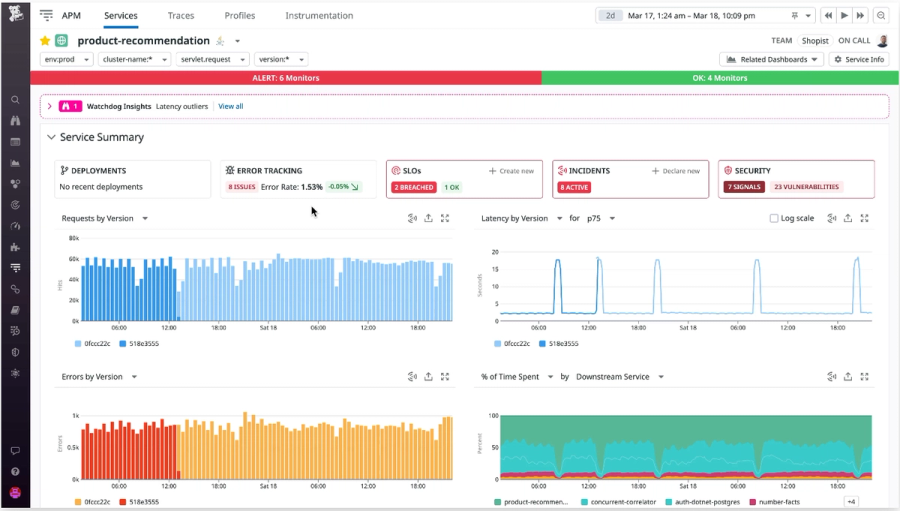DataDog APM helps you with advanced code performance, easy tracking, alerting and fixing anomalies. This way, you can abort or roll back any application deployments if issues occur before production. It also helps your company with application reliability by always making it highly available.